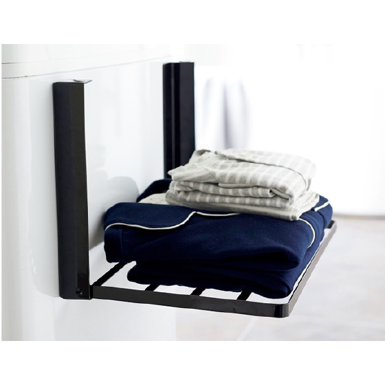 マグネットで洗濯機に貼り付けるだけ。使わないときは折りたたんですっきり。
