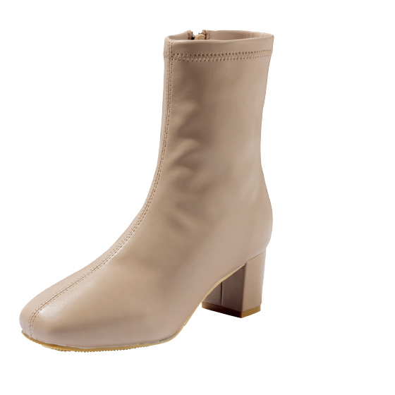 日本人に合う足型とストレッチ素材で快適にフィット。はっ水仕様だから天候を気にせず履けます。内側ファスナーで脱ぎ履きもラク。※総丈:約22cm(かかとの高さを含むMサイズの場合)。