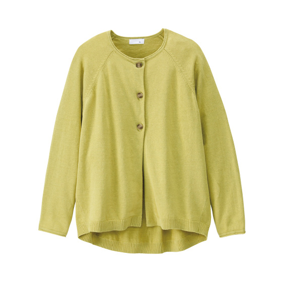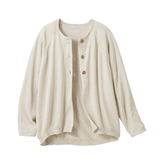 ラグラン袖でゆるっと。気負わず華やぐカーデ。