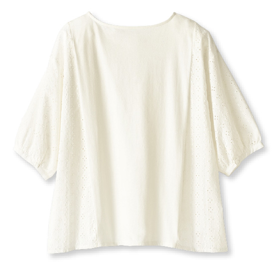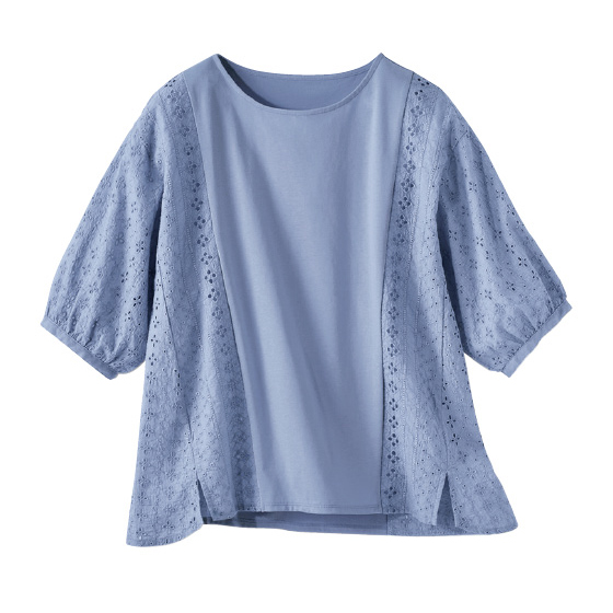 ●素材:ニット部分=ポリエステル65%・綿35%(ニット、天竺)、布帛部分=綿100%(織物、刺繍レース)