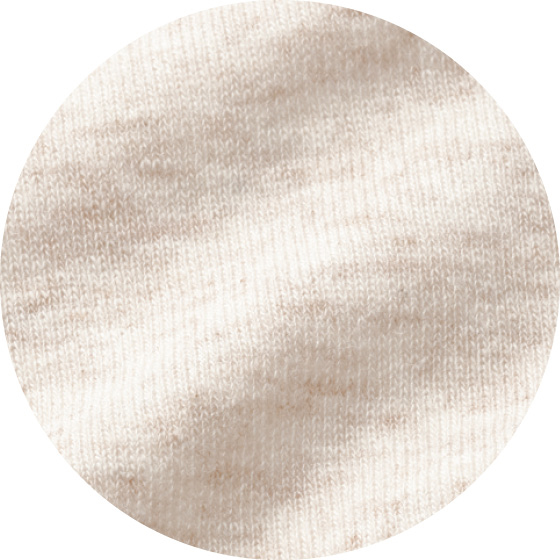 細番手のオーガニックコットンで編んだ、肌がほっとするやわらかな風合い。杢調の色合いもナチュラル。