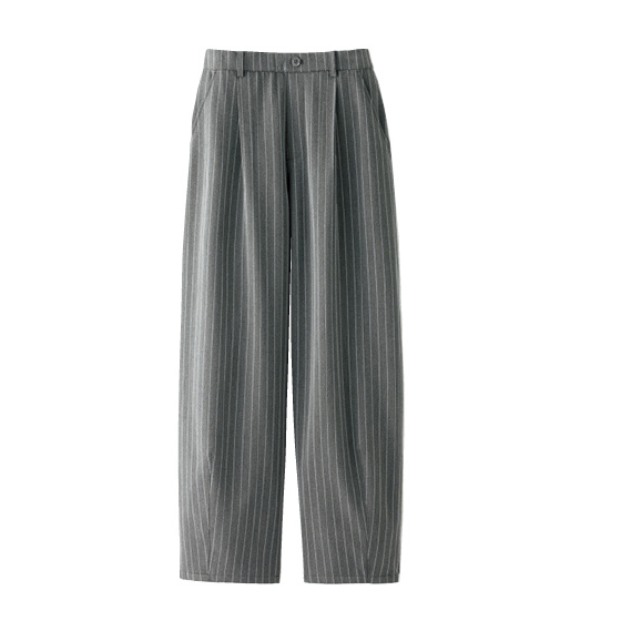 旬のコクーンパンツを、大人がはきやすいカーブのゆるいシルエットに。ウエスト前はフラット仕様なので、トップスインしてもおなか回りがすっきり見え。※通年着用できます。