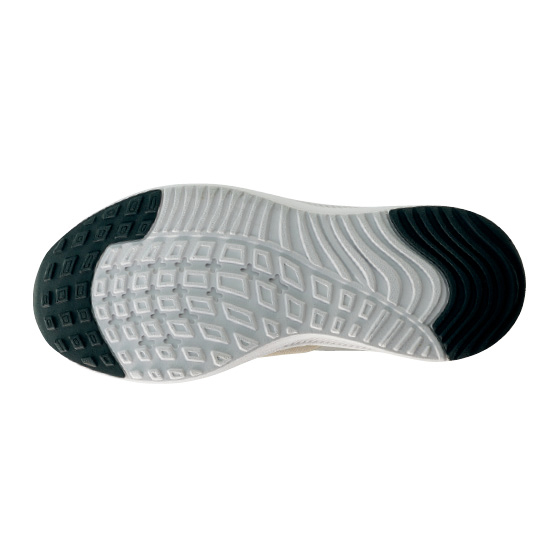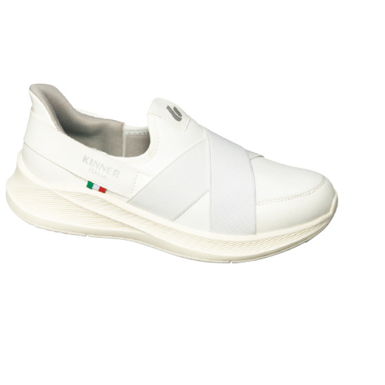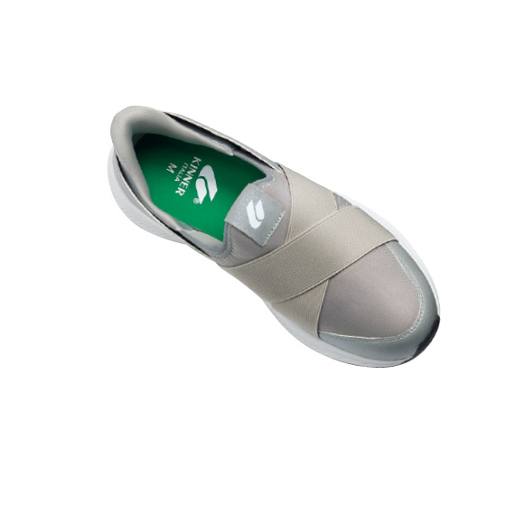 足のフィット感を高めるクロスゴム仕様。伸縮性のあるアッパー素材でソフトな履き心地。