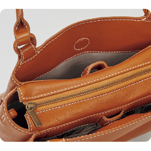 500mLペットボトルや折りたたみ傘もすっぽり入る安心のサイズ感。整理しやすい3層構造。アオリ式ポケットの内部に開閉用マグネット付き。取り外し可能なショルダー付き。手で提げても肩に掛けてもOK。