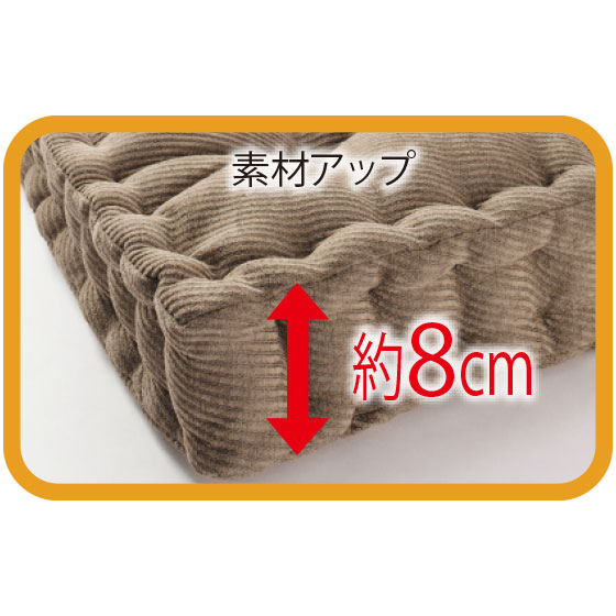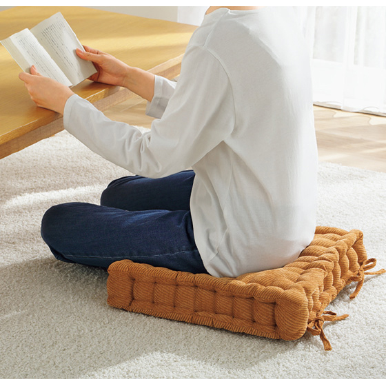 厚みたっぷりで座り心地UP!ハンドクラフト仕上げのマチ付き。厚み約8cmのボリュームで座面ふっくら。フロアクッションとしても。