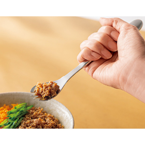 食べやすい浅く小ぶりなヘッド。一体設計でお手入れもラク。どんな持ち方でも握りやすく安定感のある太め設計。