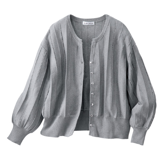 旬の立体的な編み柄に映え感のある春カーデ。身幅も袖もゆったりなのに、短め丈ですっきり見えてワイドボトムにもよく合います。毛玉になりにくく、乾燥機まで使えるイージーケア。