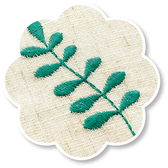 ●素材:ポリエステル・麻、刺繍糸=上糸/レーヨン100%、下糸/ポリエステル100%