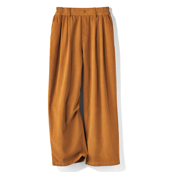 気になる腰回りをカバーする2本のタック入りコーデュロイパンツ。裾に向かって細くなるシルエットで脚をすっきりキレイに見せてくれます。ウエストは3/4ゴム仕様でラクなはき心地。※春冬におすすめです。