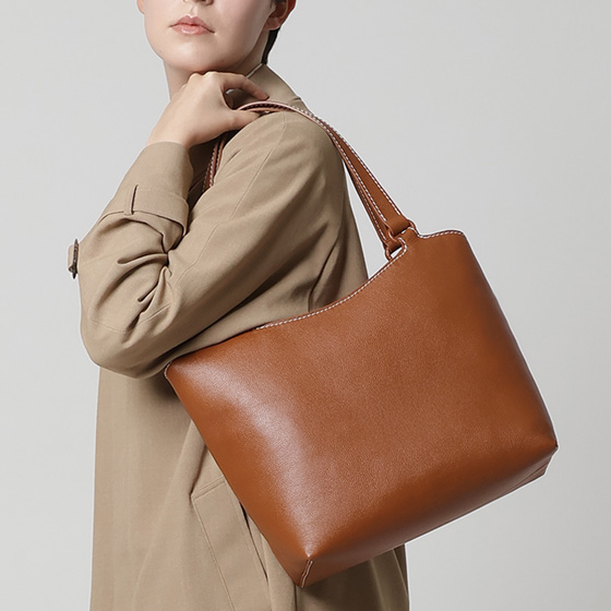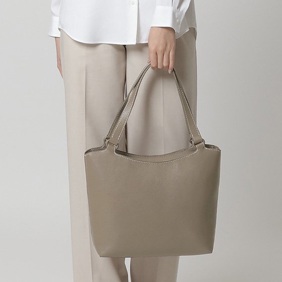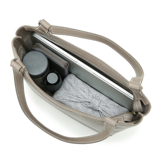 シンプルでスマートなフォルムながら、A4サイズが入るオン・オフ兼用のトートバッグ。