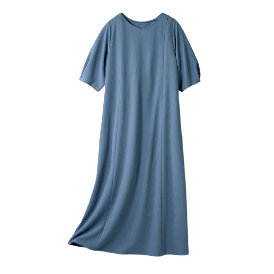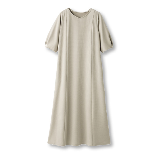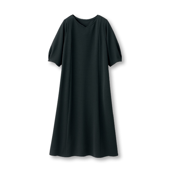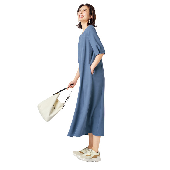 サラリと肌離れして体の線を拾いにくい素材。流れるようなドレープで上品なシルエット。360度伸びて着心地がよく、シワや毛玉、シルエット崩れも抑えるから外出先でもリラクシー。洗濯機で洗えて乾きが速く、乾燥機も使えるほどタフ素材。お手入れに手間なしでヘビロテ。