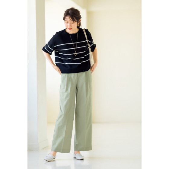 サラッと軽くて、量感のあるワイドなのに軽快。気負わない生地感だから、仕事から遊びまで着回し自在。ワッシャー加工を施した防シワ素材。シワが目立ちにくく気になりにくい生地で、はくだけで決まるキレイ見え。ざぶざぶ丸洗いできて乾きが速く、面倒なお手入れが不要。汗や雨もすぐに乾いてカラッとドライタッチ。※春夏秋、3シーズン着用できます。