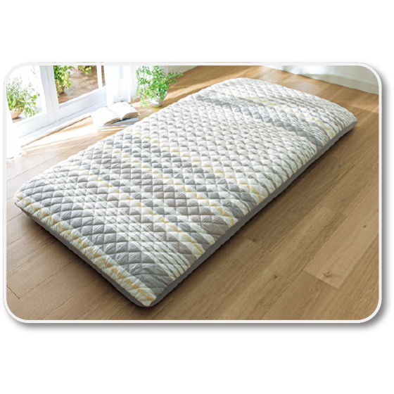 ●素材:表側=綿100%、裏側=ポリエステル100%、詰めもの=ポリエステル100%(抗菌防臭加工、シングル=0.3kg、セミダブル=0.36kg、ダブル=0.42kg、クイーン=0.48kg、キング=0.6kg)、マチ部分=ポリエステル93%・ポリウレタン7%