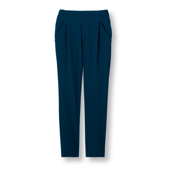 フロントにタックを入れてゆとりを持たせることで、ほどよい抜け感のあるシルエットに。どんなトップスにも合わせやすく、きれいに決まります。タテヨコによく伸びるニット素材ながら、ニットに見えない上品な生地感。肌離れがいいので、体のラインを拾いにくいのも嬉しい!※春夏秋、3シーズン着用できます。