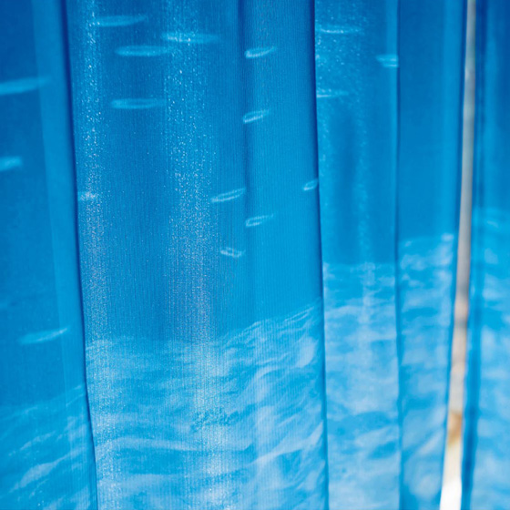 心安らぐ、海の中みたいな深いブルー。海の中の写真をそのままプリントしたレースカーテン。風に揺れるとまるで海の中にいるような心地良さに包まれます。