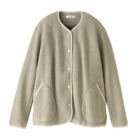 ふんわり軽いフリース生地。ゆるシルエットでニットの上にも重ねやすく、パイピングとステッチ使いでさりげなく洒落見え。