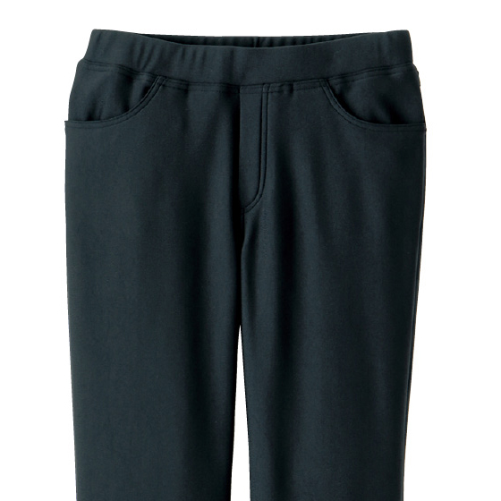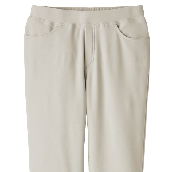 ほどよいハリとコシのある生地に、肌触りなめらかな裏起毛をプラス。グンと伸びてシワになりにくいハイテンション素材で、動きにフィット。ファスナーなしでサッとはけるのに、前開きのようなステッチできちんと見え。※冬・早春に着用できます。