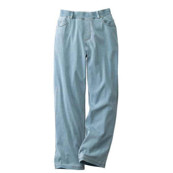 ●素材:綿54%・ポリエステル38%・ポリウレタン8%(ニット、丸編み・タテヨコのび、ウォッシュドサックス=バイオウォッシュ加工)