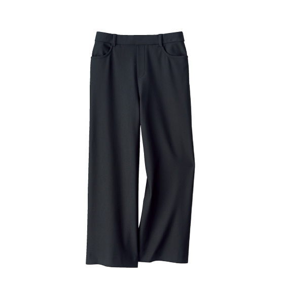 水が染み込みにくい素材。すっきり見えのワイドクロプト。