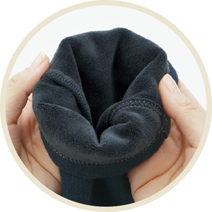 冬用のニットデニムの裏側に、肌触りなめらかなベロアを貼り合わせたボンディング素材。やわらかな肌触りで温もりを保って真冬もあったか。※春冬に着用できます。