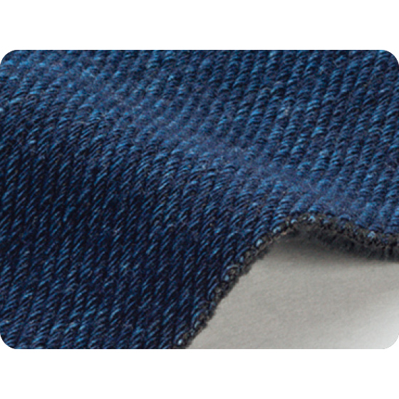 ●素材:綿53%・ポリエステル40%・ポリウレタン7%(ニット、丸編み・タテヨコのび、ボンディング加工、インディゴのみバイオウォッシュ・ブラスト加工)、裏側=ポリエステル92%・ポリウレタン8%(ベロア)