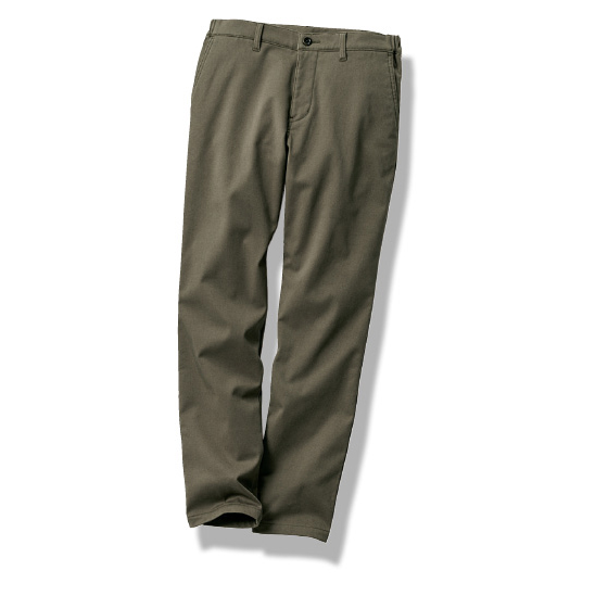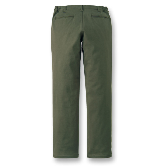 きちんと見えするノータックのチノパンツでも、全面裏フリースで、はき心地ぽかぽか。外回りの仕事やレジャーにも。綿混のストレッチチノ素材。裏側にフリースを貼り合わせてあるので、ぽかぽかのはき心地。ウエストは後ろ両わきゴム入りでラク。※厳冬に着用できます。
