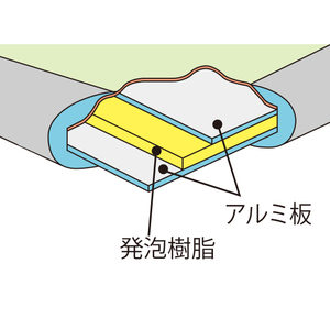 水や汚れに強いアルミ板で発泡樹脂素材をはさんだ、丈夫で耐久性のよい構造です。