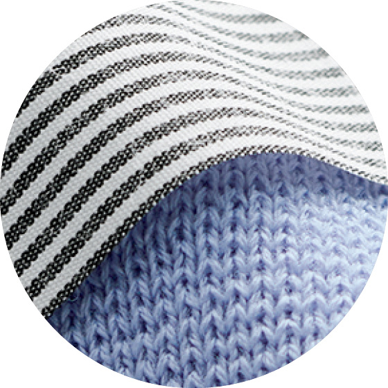 ●素材:身頃部分=ポリエステル75%・レーヨン25%(ニット、ミラノリブ)、袖部分=ポリエステル65%・綿35%(織物、平織)