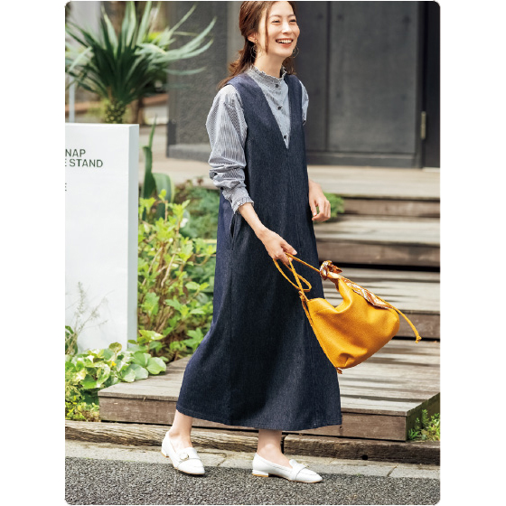インナーを変えて着回しが楽しめて、オールシーズン活躍。縦ラインを強調するセンター切替で、すらっと細見えに。