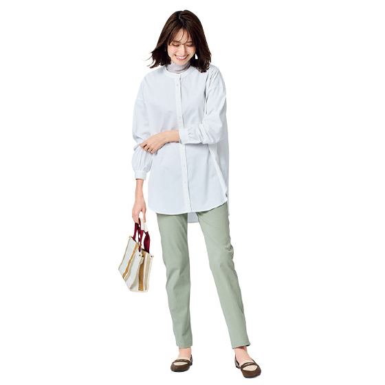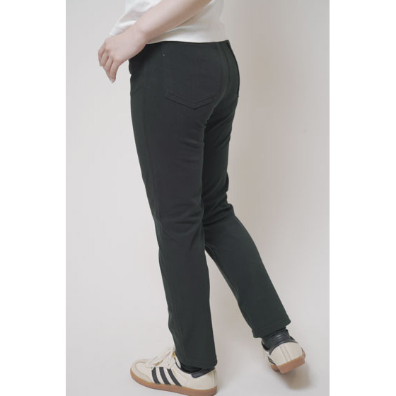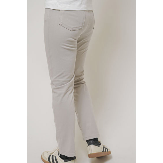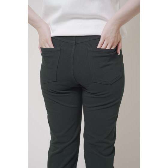 ウエストはファスナーなしのプルオン仕様。座っても締めつけにくく、脱ぎはきもサッと時短。