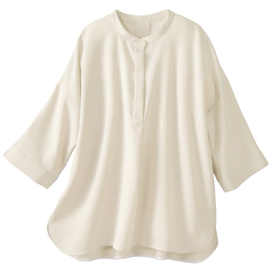 二の腕も体の線も上手にカバー。ゆるっときれい映えブラウス。