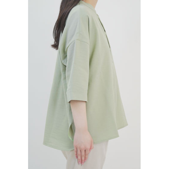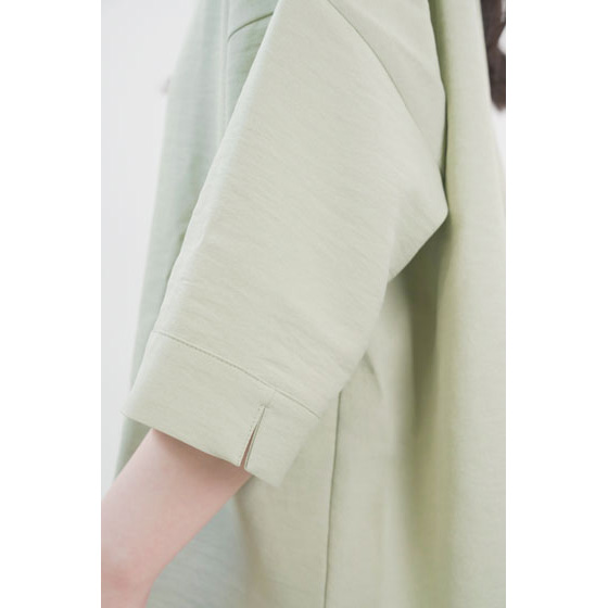 個人的に袖が短すぎず、体のラインがハッキリしないのが良いです。中に重ね着をする必要もなく、さっとこれを着れば、それででかけられます。