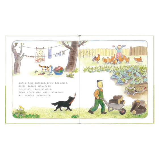 えんどうまめばあさんとそらまめじいさんは、とても働き者なのですが、ひとつだけ困ったところがあります。何かしている途中でも、すぐに他のことを始めてしまうのです。