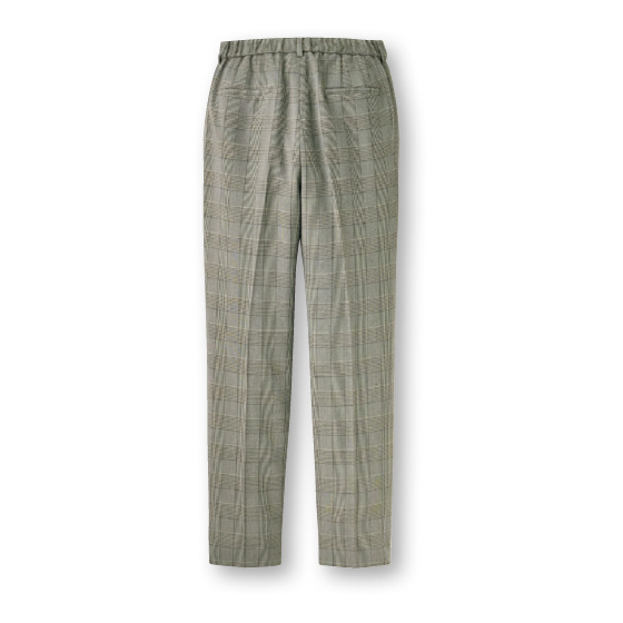 人体計測分析に基づいたパターンで、ヒップ回りは立体的に、おなかと脚はすっきり見せるテーパード。ストレッチ性のある上品なツイル素材で、家での洗濯もOK。※通年着用できます。