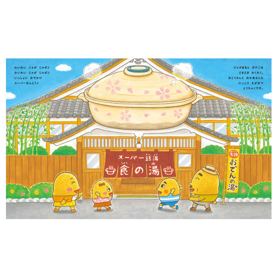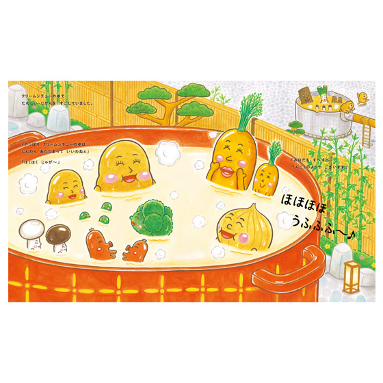 みその湯、カレーの湯、クリームシチューに天ぷらの湯。つぎはなんのお風呂にする?こころも体もほっくほく。日本初!?スーパーせんとう絵本。