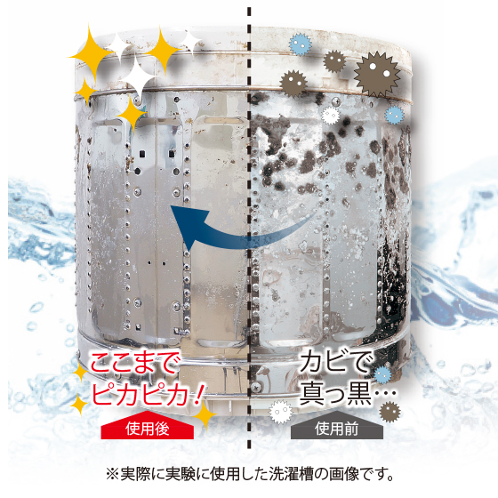 カビの温床になりがちな洗濯槽の裏側は、本品で定期的な洗浄がおすすめです。過炭酸ナトリウムの圧倒的な発泡力でカビを浮かせてはがし、しっかり除去。