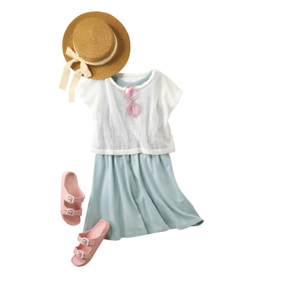 旬のシースルーTシャツと、涼やかワンピの重ね着セット。