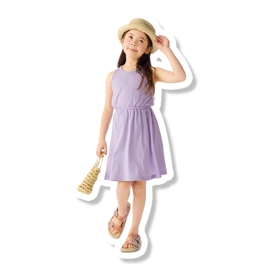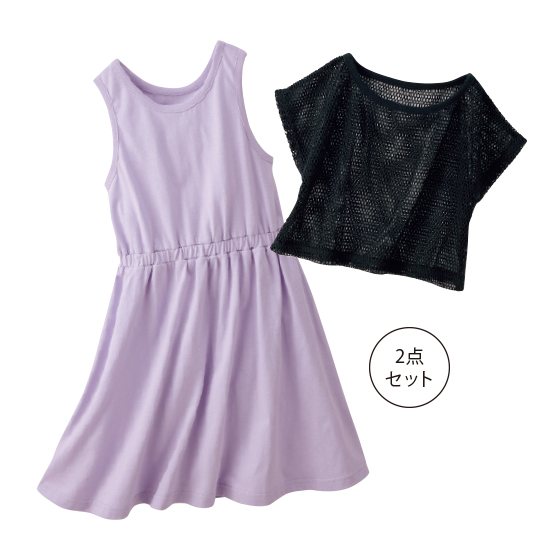 ●素材:ワンピース=本体/綿100%(ニット、天竺)、リブ部分/綿95%・ポリウレタン5%、Tシャツ=本体/ポリエステル100%(ニット、メッシュ)、リブ部分/綿95%・ポリウレタン5%