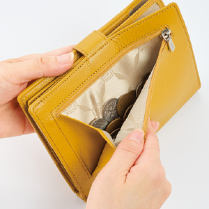 ●仕様:開閉=スナップボタン式、ポケット=外部にファスナー式1個、内部にオープン式2個・ファスナー式(仕切り兼用)1個・カードポケット14個・札入れ1個、アオリ式ポケット1個付き