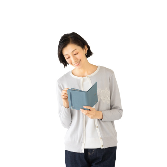 お薬手帳をはじめ、診察券や保険証など通院の必需品をひとまとめに。中身が一目瞭然で取り出しやすく、お財布としても機能します。