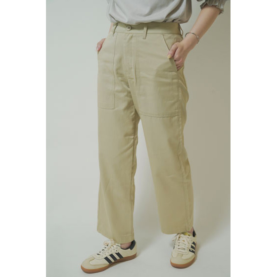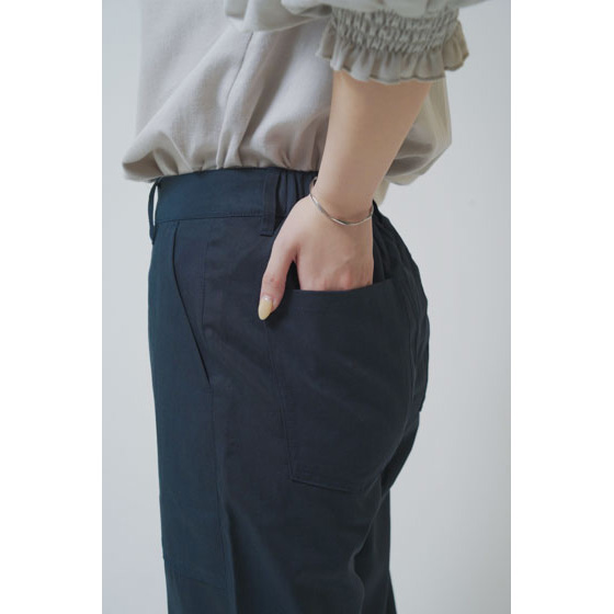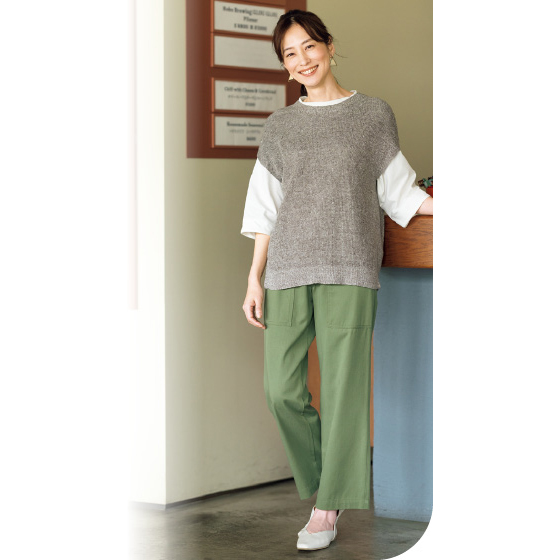 ほどよいハリ感のしなやか素材で品よく仕上げて、おとなもはきやすく。体形をほどよくカバーするストレートシルエット。※春夏秋、3シーズン着用できます。