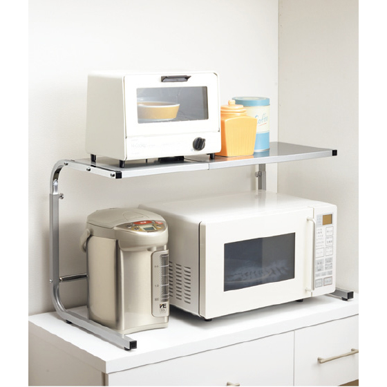 脚部アジャスター付きでガタ付き防止。スペースや置くものに合わせて幅も高さも上下左右にスライド調整できます。
