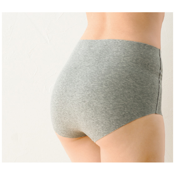おなかもヒップもすっぽり包む深ばきタイプです。マチ裏は綿混素材です。