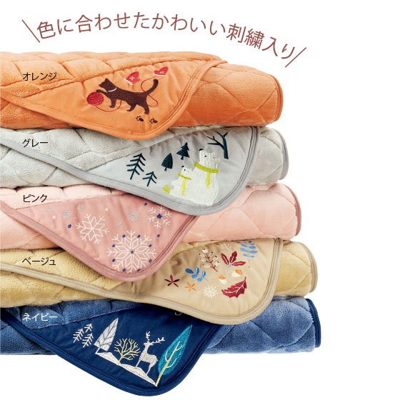 やわらかく、肌触りなめらかなフランネル素材を使用。愛らしいワンポイント刺繍を施しています。