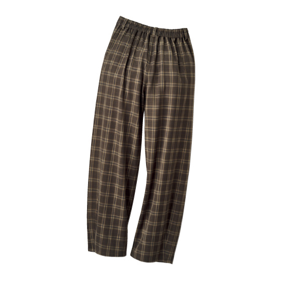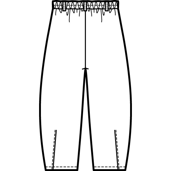 コクーンパンツを、大人がはきやすいカーブのゆるいシルエットに。ウエスト前はフラット仕様なので、トップスインしてもおなか回りがすっきり見え。※通年着用できます。