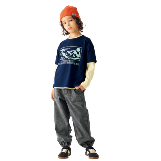 ●素材:ポリエステル65%・綿35%(ニット、天竺)、リブ部分=ポリエステル62%・綿33%・ポリウレタン5%
