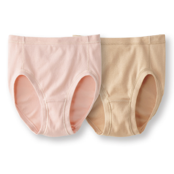 縫い目は外側にし、肌への接触を軽減。ゴロつき感がありません。洗濯表示を身生地に直接印字し、ネームの肌当たりをなくしました。やわらかなゴム使用で、肌に直接当たらないつくり。マチ裏は綿100%素材です。