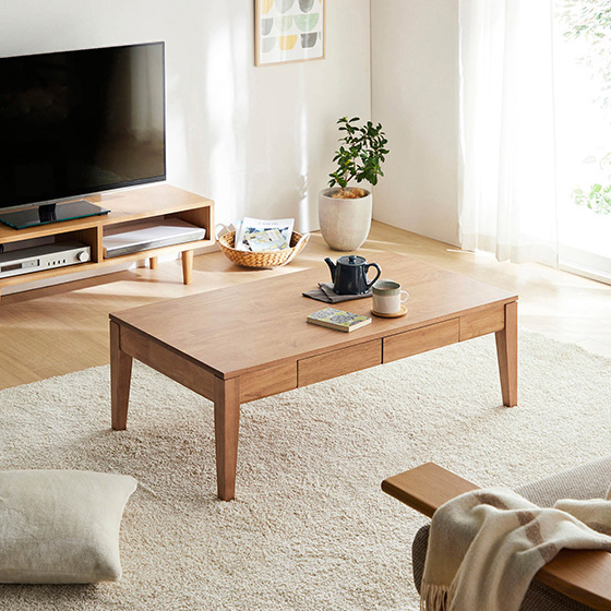 天然木の風合いがポイント。ソファ前にもちょうどいい高さです。