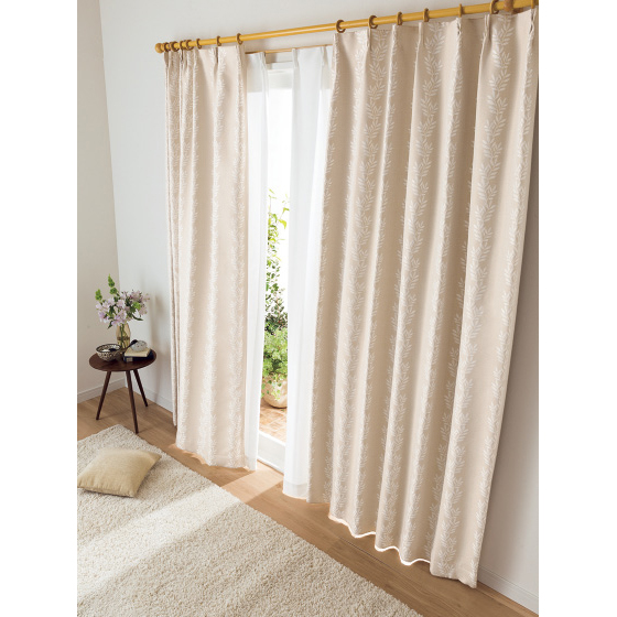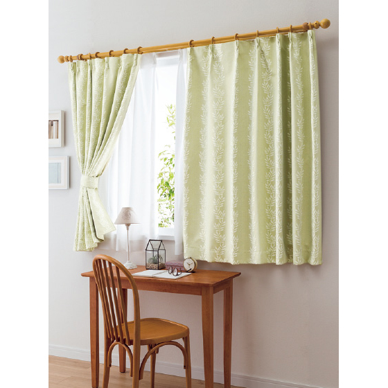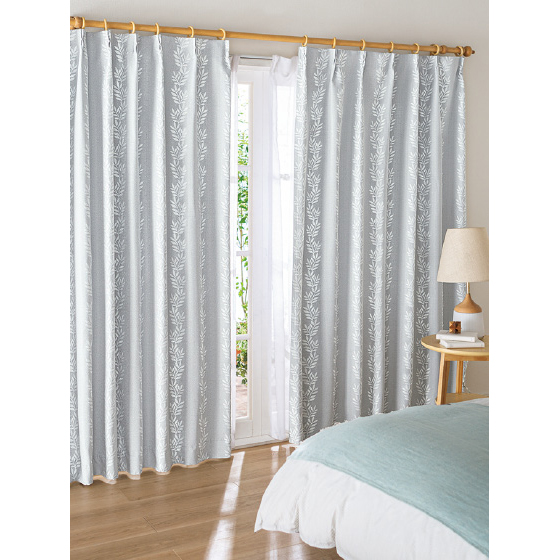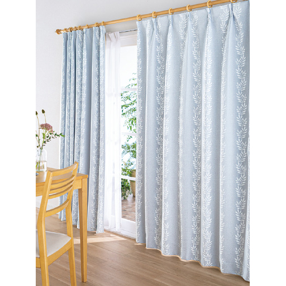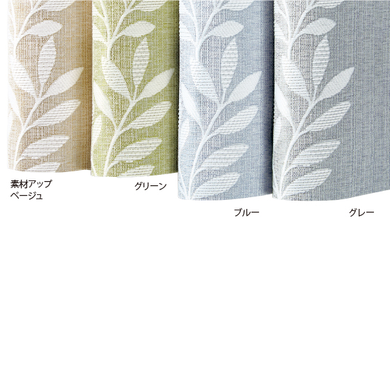 高級感のあるジャカード織でさわやかなリーフ柄を表現。ドレープに映える品のよいデザインです。ジャカード織は、織りの密度が高く、繊細で立体的な柄が上品な華やぎを演出します。