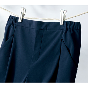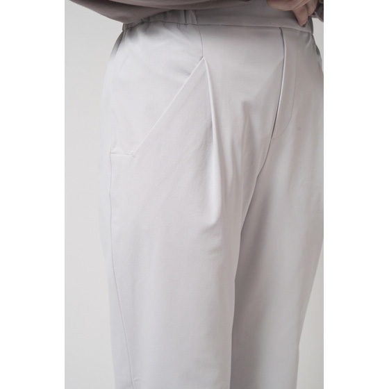 フロントにタックを入れてゆとりを持たせることで、ほどよい抜け感のあるシルエットに。どんなトップスにも合わせやすく、きれいに決まります。タテヨコによく伸びるニット素材ながら、ニットに見えない上品な生地感。肌離れがいいので、体のラインを拾いにくいのも嬉しい!※春夏秋、3シーズン着用できます。